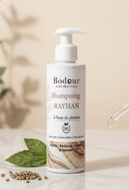 Le Shampooing au Rayhan est un soin capillaire naturel conçu pour purifier le cuir chevelu et revitaliser les cheveux. Grâce à ses extraits végétaux riches en nutriments, il aide à renforcer la fibre capillaire, préserver la pigmentation naturelle et redonner vitalité aux cheveux fatigués.